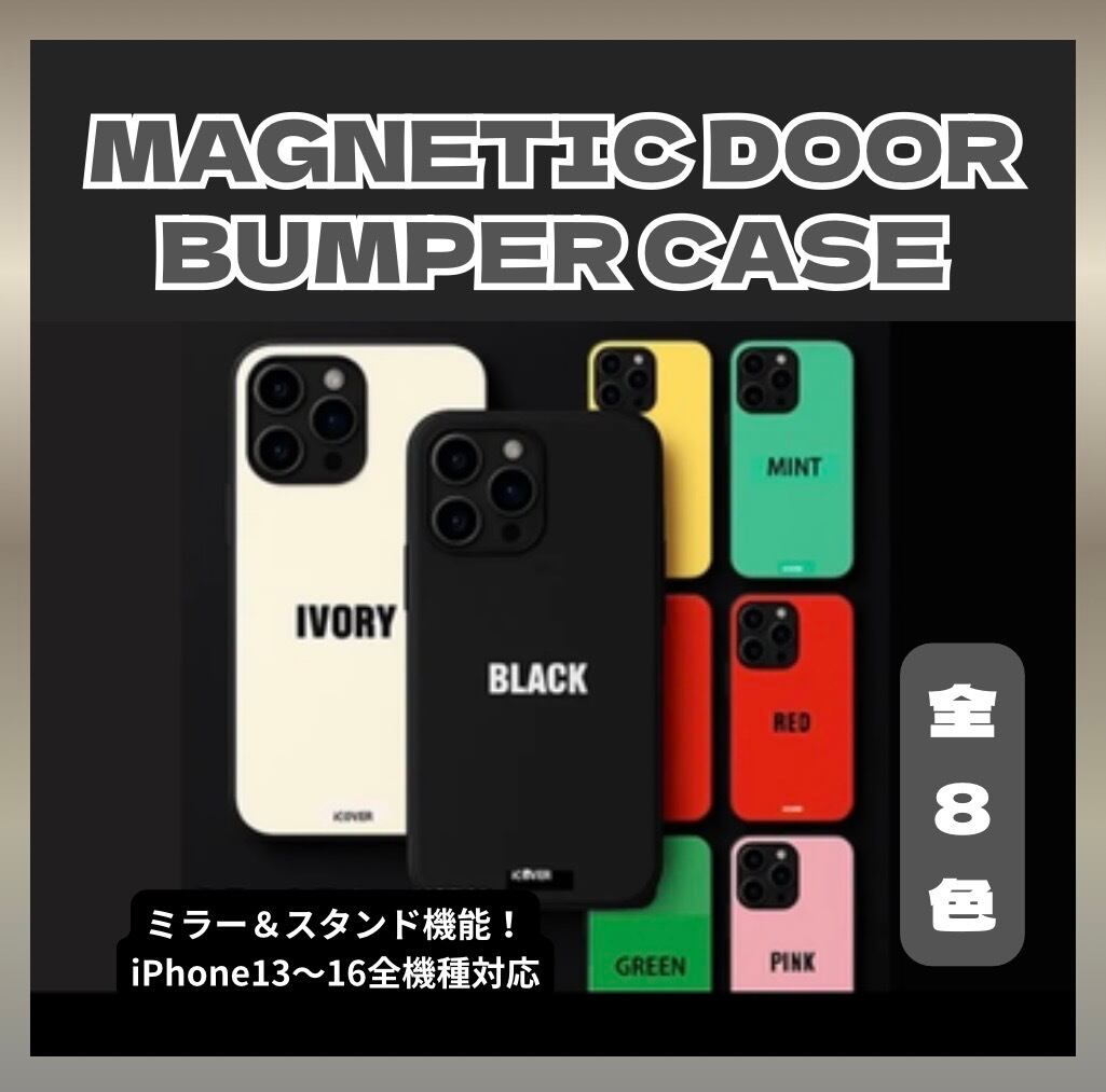 【大人可愛い×高機能】『MAGNETIC DOOR BUMPER CASE』全8色展開♡ミラー付きiPhoneケース|Suica収納&スタンド機能◎ 送料無料!