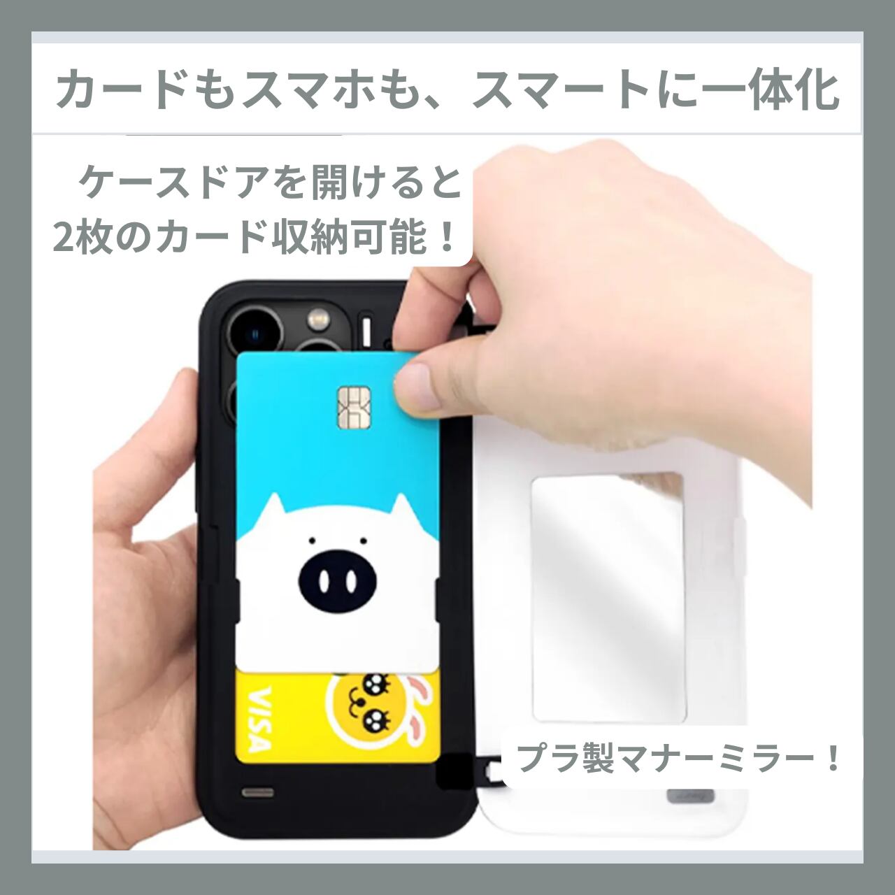 ・カード収納(2枚):ICカードやポイントカードをスマートに収納