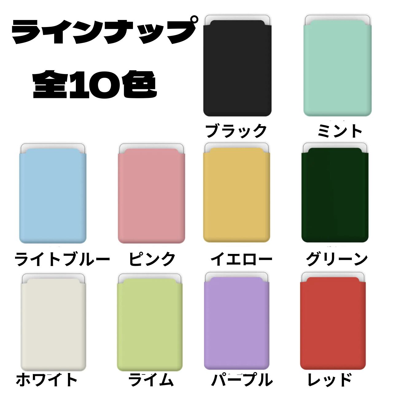 ブラック / ミント / イエロー / グリーン / ホワイト / ライム / パープル / レッド / ブルー / ピンク(全10色)