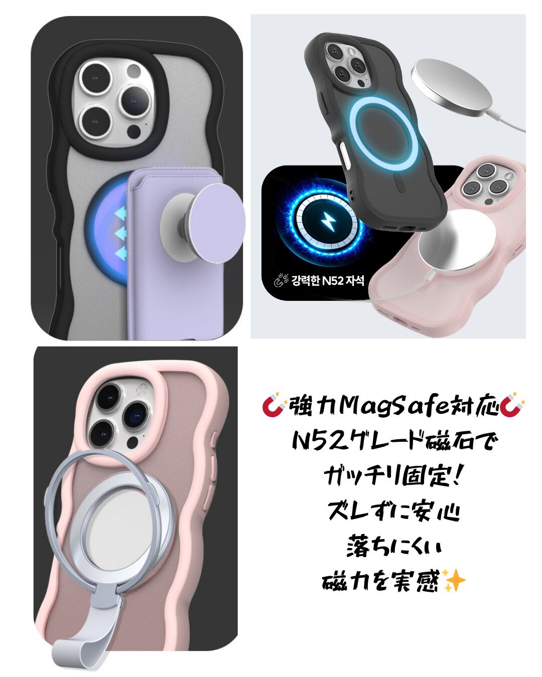 【グルウェーブ MagSafeケース】iPhone16シリーズ対応 / 強力磁力 × エアバンパー × 半透明マット