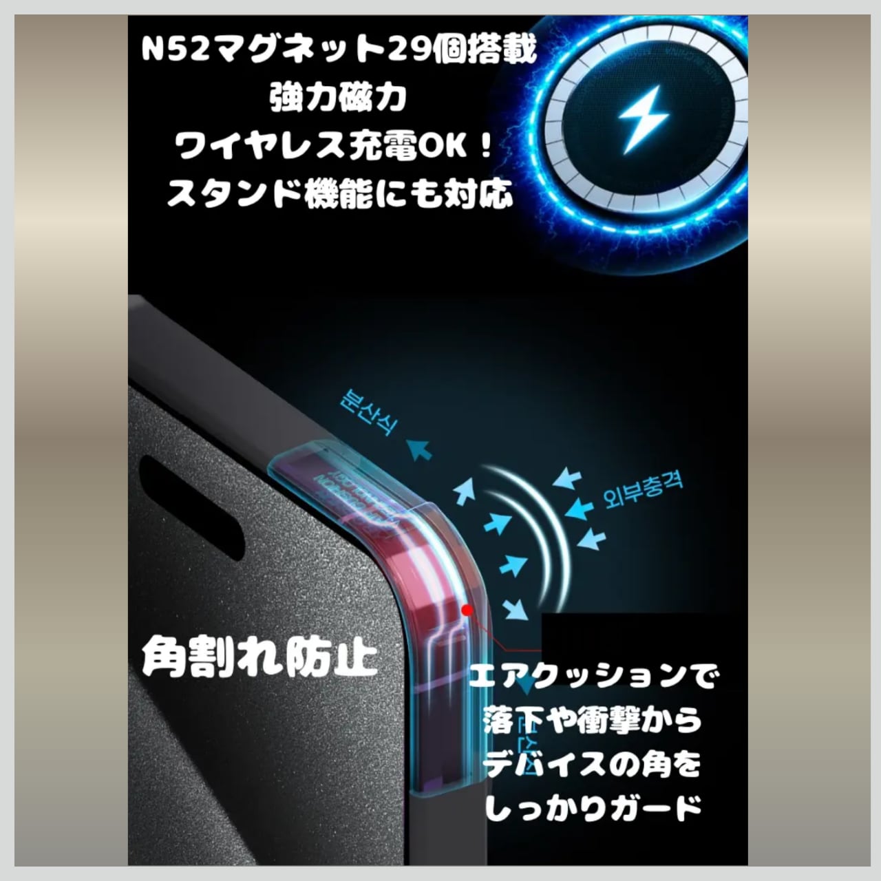 ★ N52マグネット29個搭載:強力磁力でMagSafe充電・スタンド機能対応。