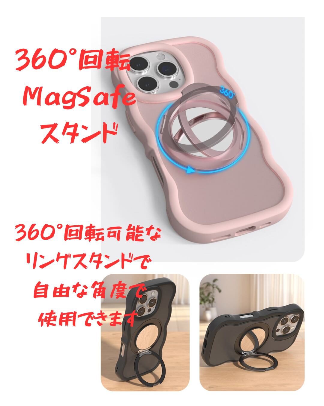 ✅ 360°回転リング付き → スタンドにもなる!