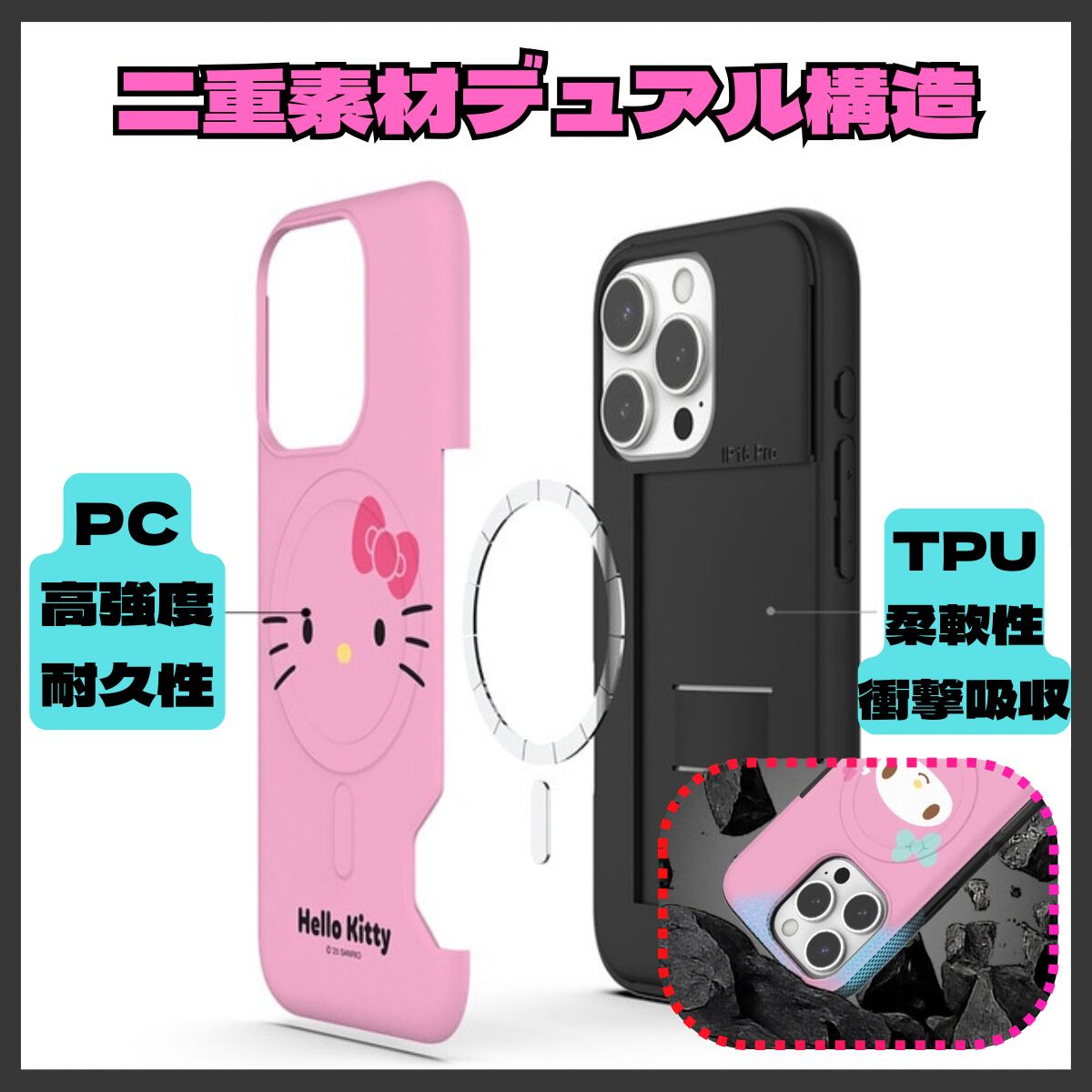 • 三重構造で安心: • PC(高強度・耐久性) • TPU(柔軟性・衝撃吸収)