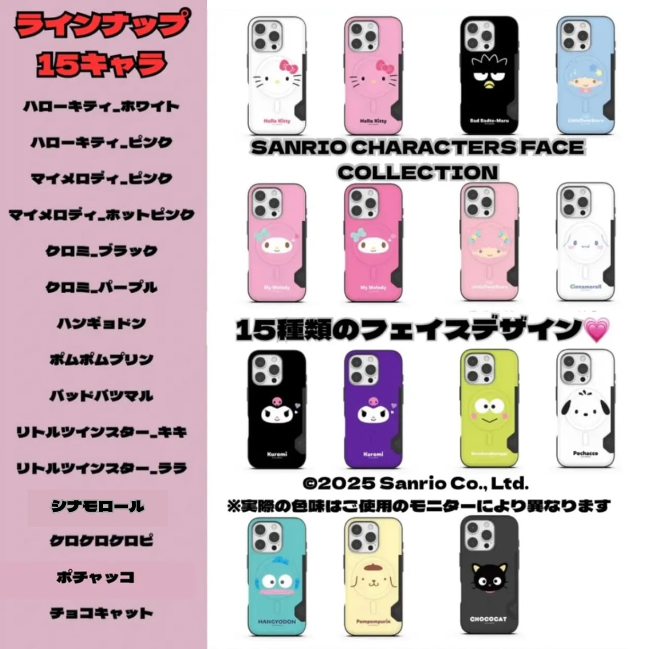 ✨ サンリオ人気キャラクターのフェイスデザインが勢ぞろい!全15キャラクターからお気に入りを選べる‼