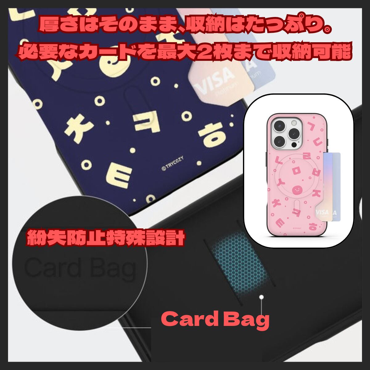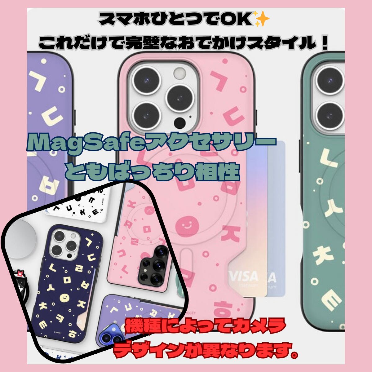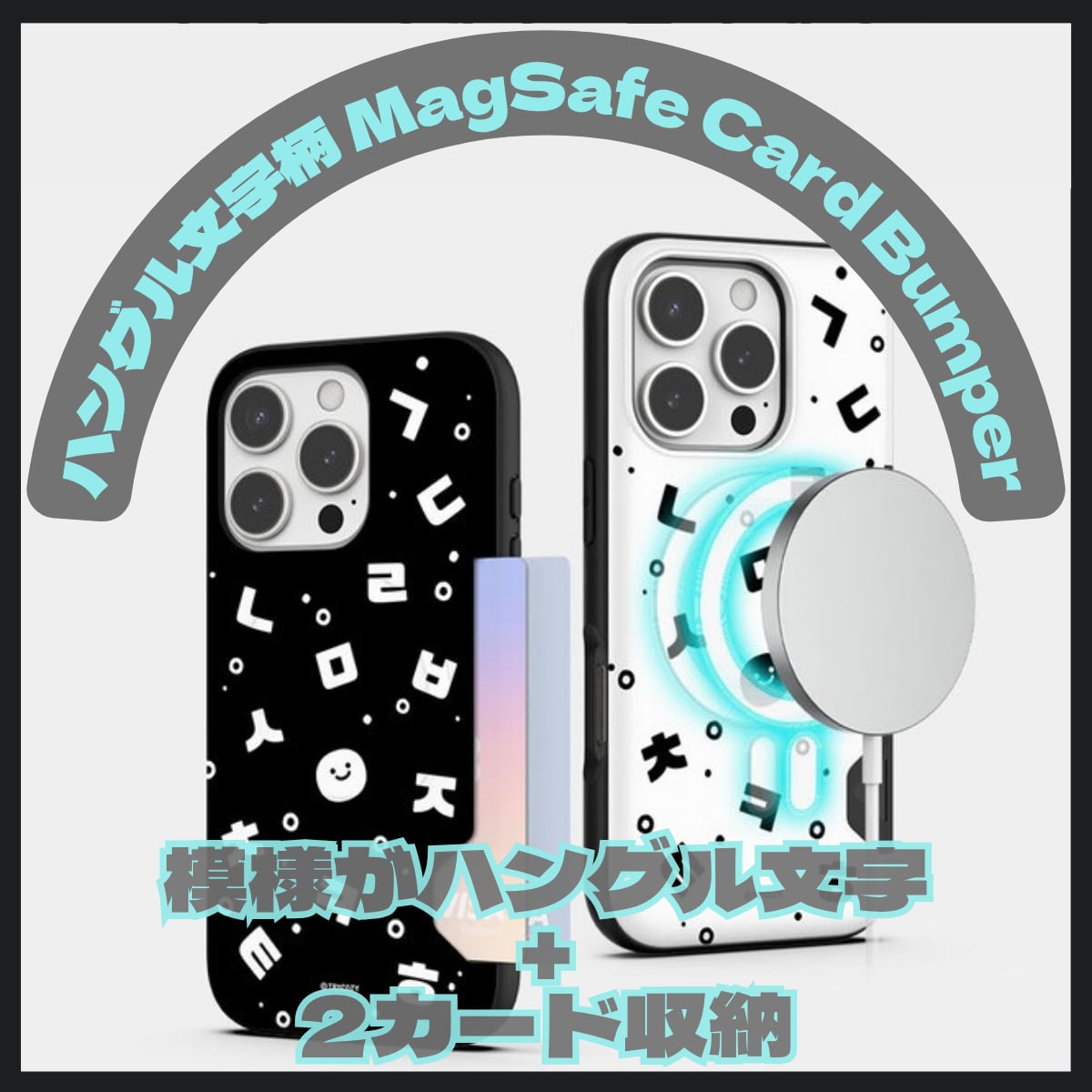 韓国っぽデザインのハングル文字柄 MagSafe対応カードバンパーケース。 スマホひとつでお出かけOKの便利アイテムです✨