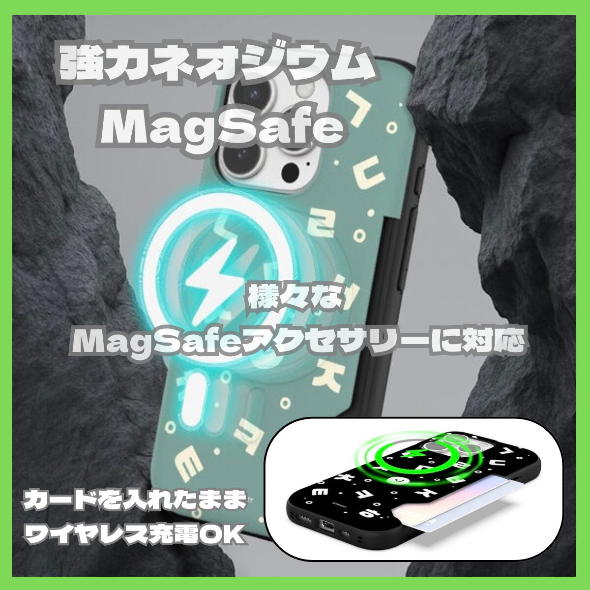 強力なネオジム磁石内蔵で、MagSafeアクセサリーとも相性抜群! カードを入れたままでもワイヤレス充電OK。