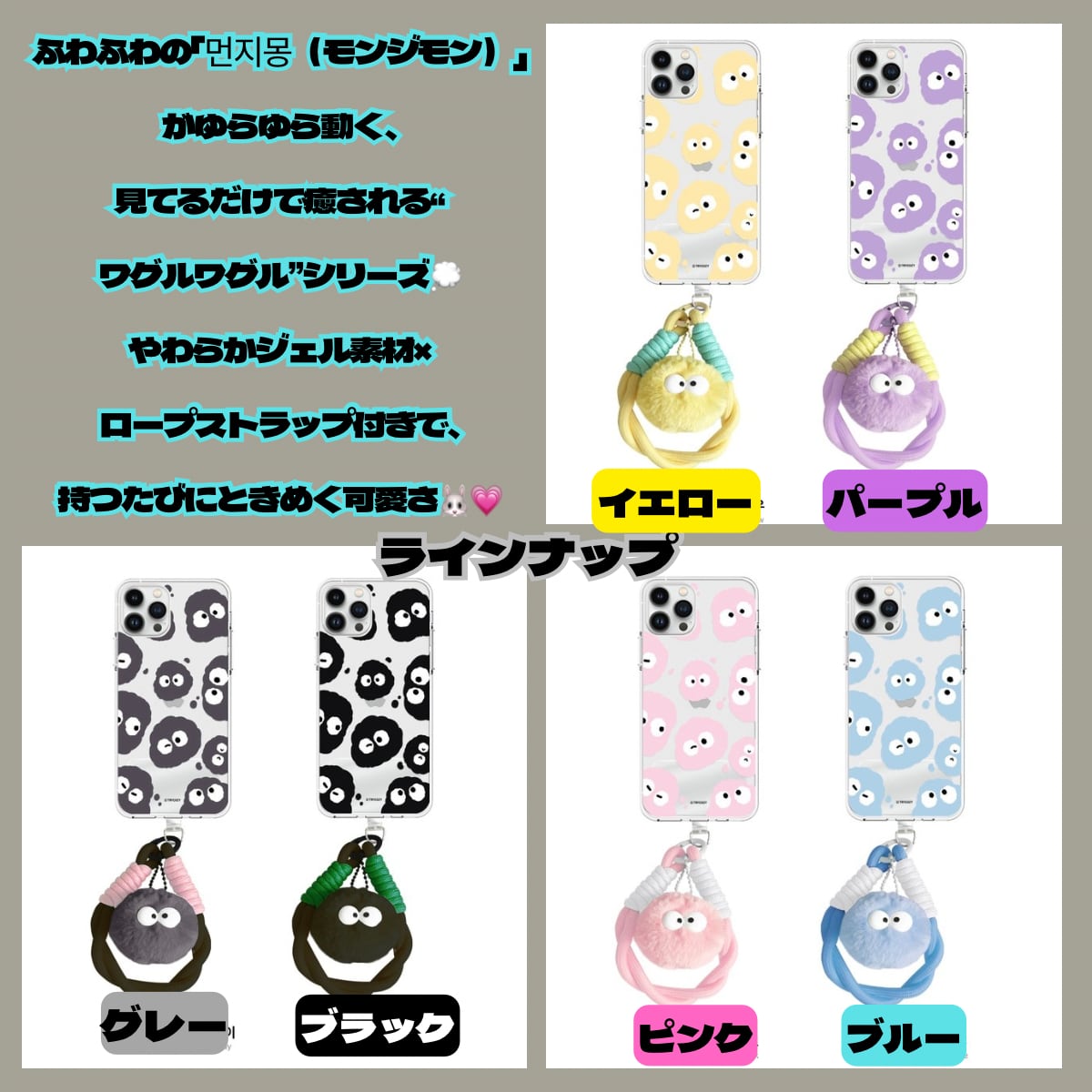 やわらかジェル素材×ロープストラップで、 見ているだけで癒される人気の「ワグルワグル」シリーズ