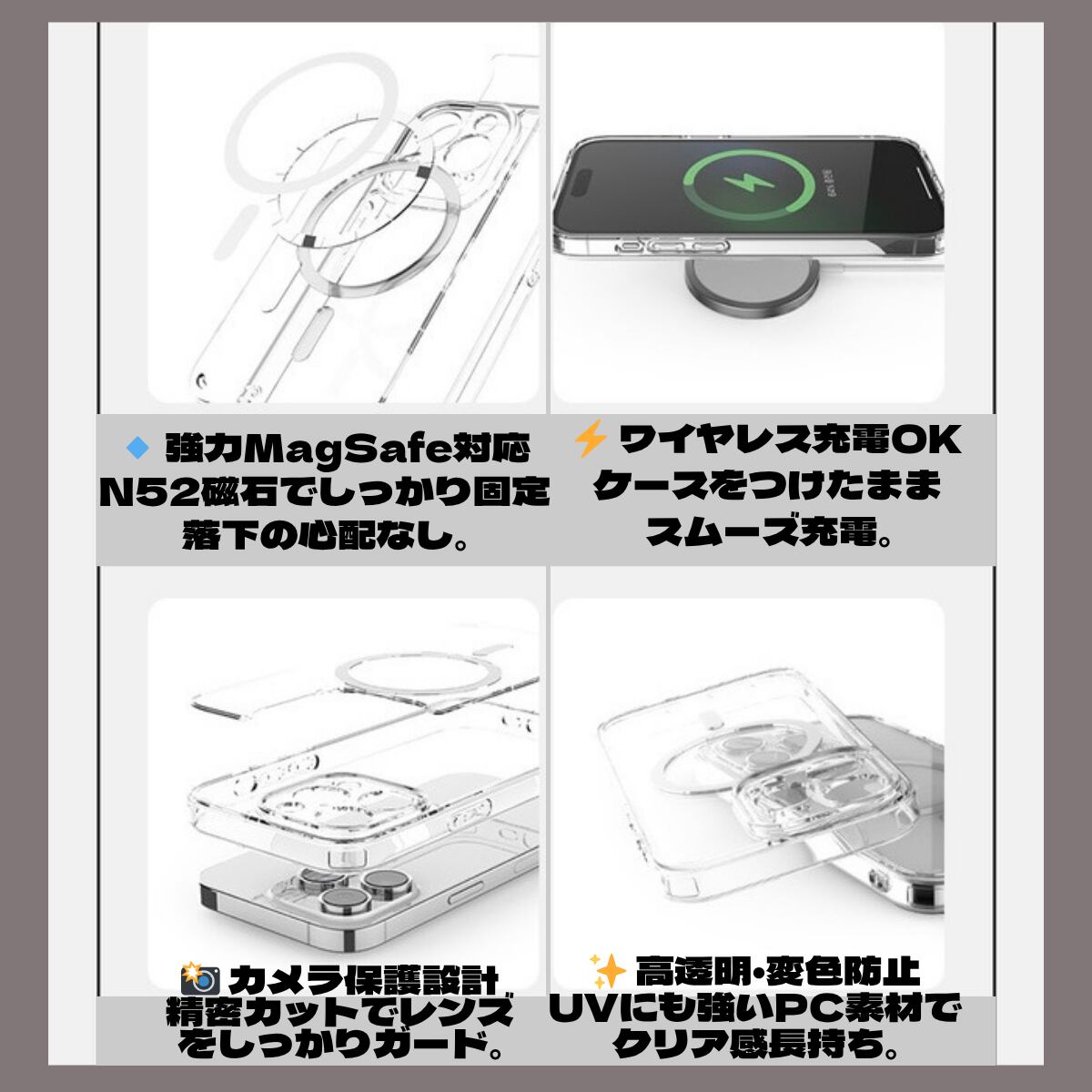 ✨MagSafe対応&クリア設計 • 強力N52マグネット搭載で、落下の心配なし