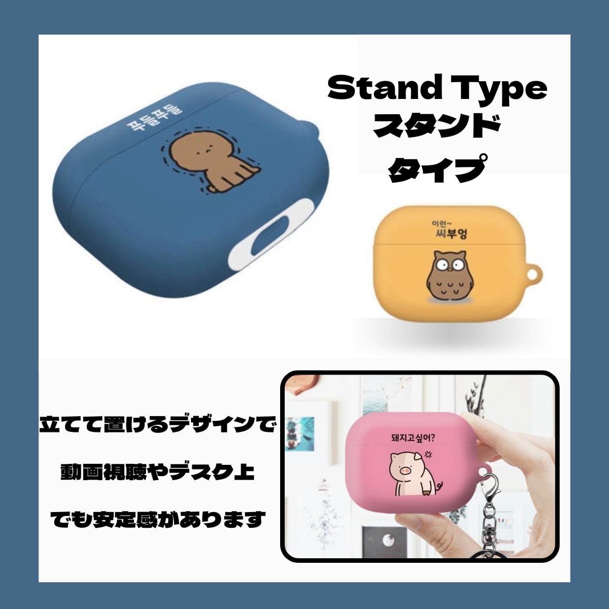 ⸻ 便利な【スタンドタイプ】 立てて置ける構造で、動画視聴やデスク上でも安定感抜群! 見た目のかわいさだけでなく、実用性も◎