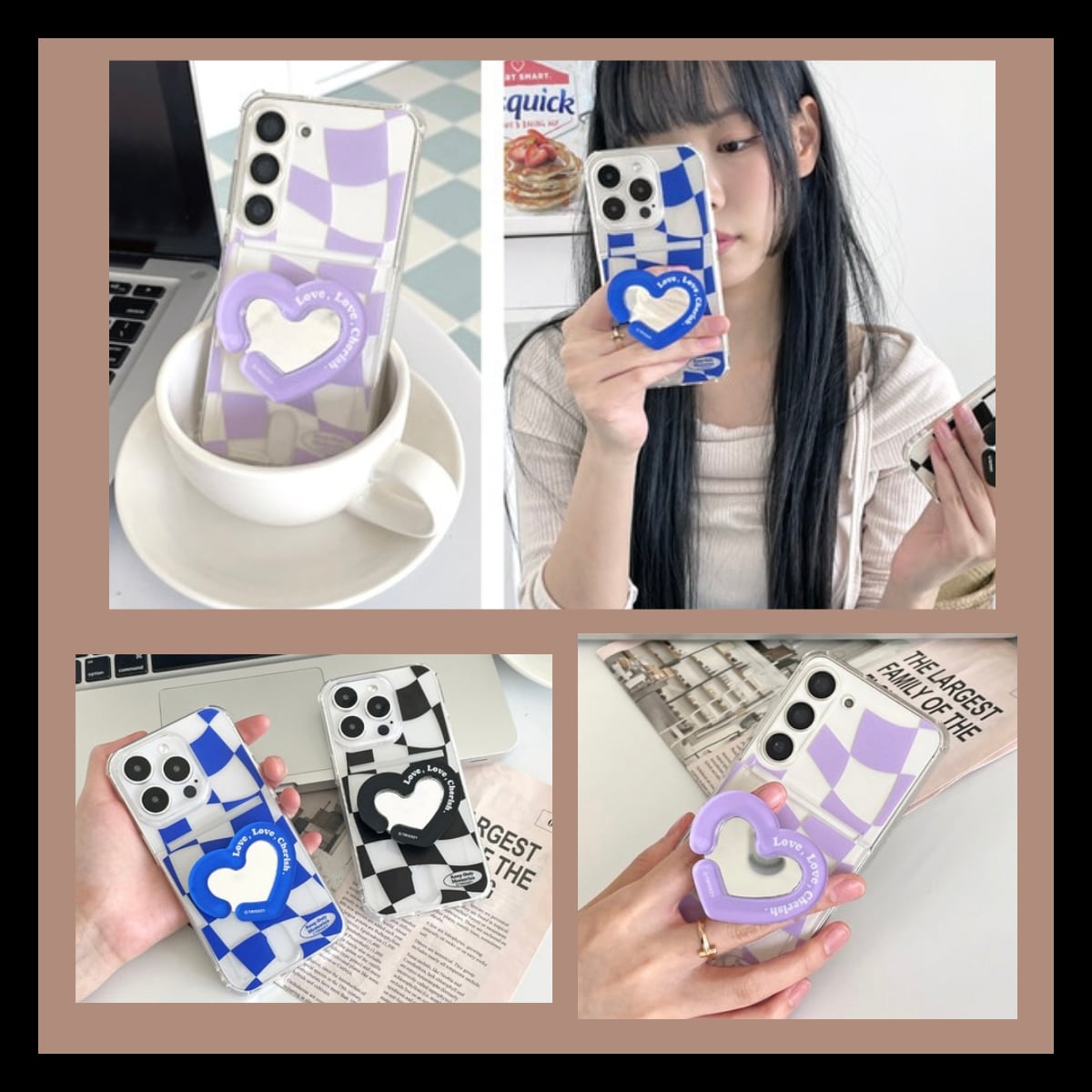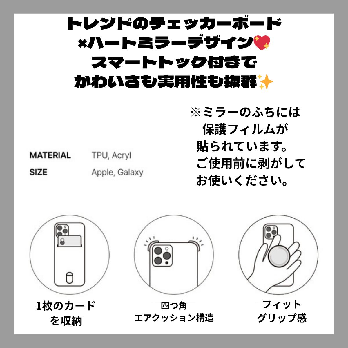 【Heart Checker Mirror Jelly Case】(ハートチェック柄・カード収納付き)
