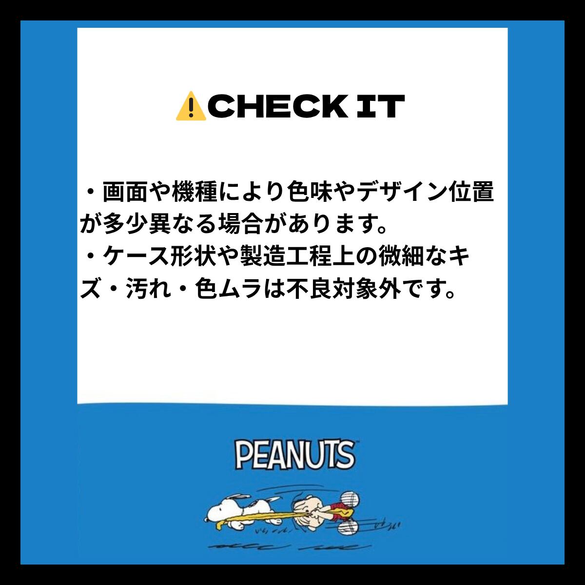 • ケース形状や製造工程上の微細なキズ・汚れ・色ムラは不良対象外です。