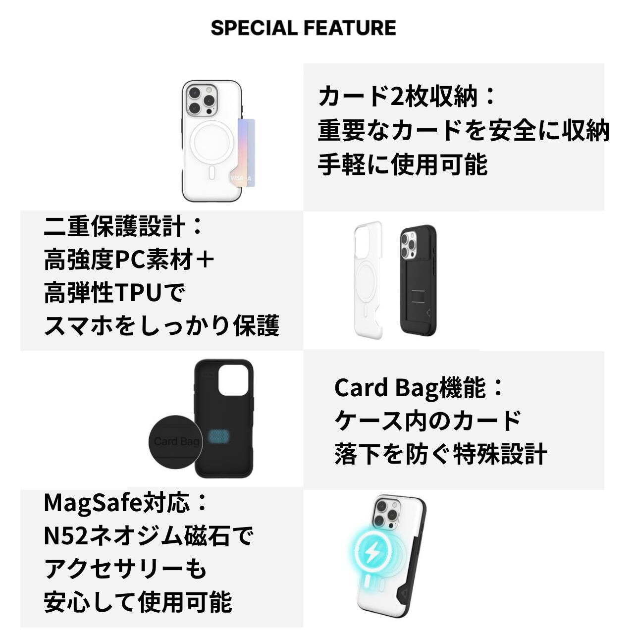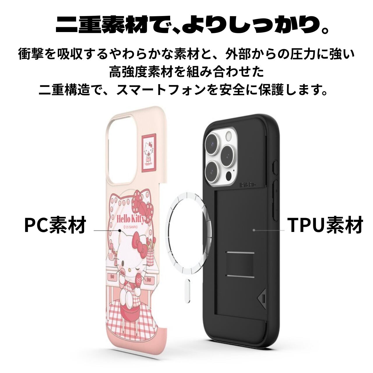 可愛さと実用性を両立した、2枚収納タイプのMagSafe対応ケースです。